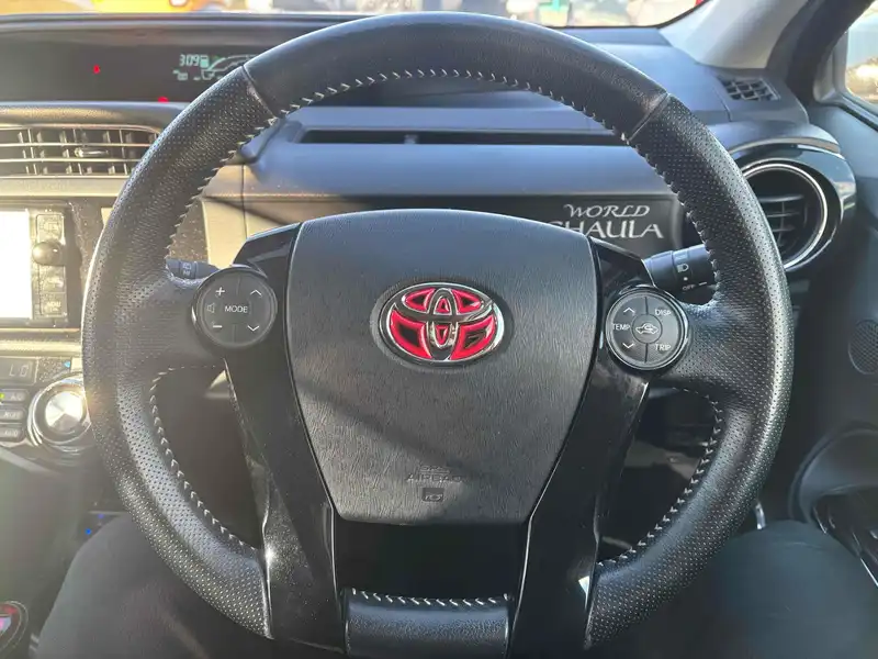The 2014 Toyota Aqua Hybrid is perfect for city drives. This red car offers an efficient and smooth ride, making daily commutes eco-friendly. With its FWD and automatic transmission, this Aqua is easy to handle and perfect for any driver. Stay comfortable with the air conditioner and power windows. Enjoy the premium feel of a leather steering wheel and a high-tech cruise control feature. Safety is a priority with dual airbags, anti-lock braking, and brake assist. With only 107,000 miles, this car is ready for more adventures. It also comes with extra safety features like a traction control system and an anti-theft system. Drive confidently with tinted UV glass and a rear wiper for clear visibility. The 2014 Toyota Aqua Hybrid is a smart choice for anyone seeking style, efficiency, and safety.